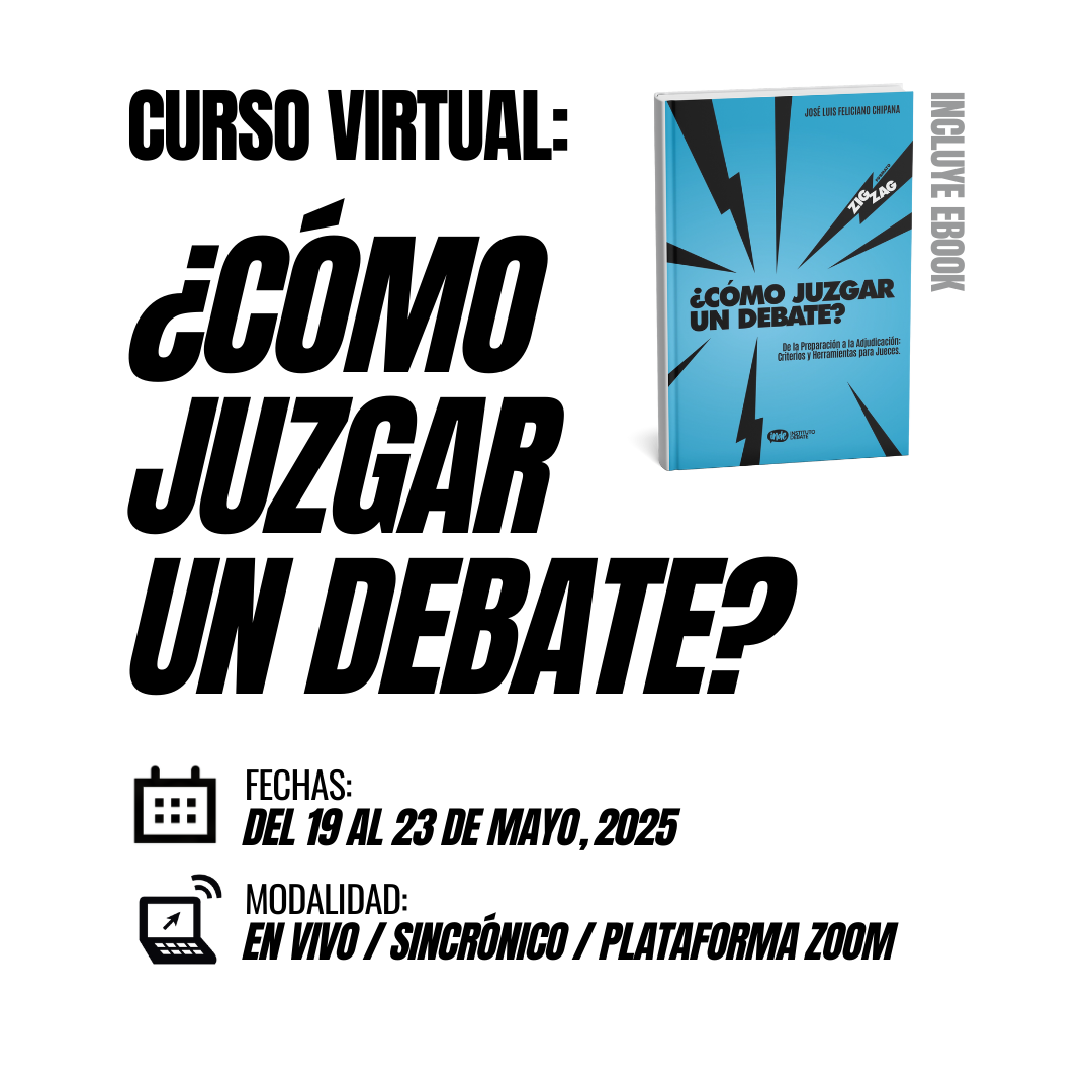 El curso virtual "¿Cómo Juzgar un Debate?" está diseñado para formar jueces con un criterio sólido, imparcial y basado en estándares de evaluación objetivos. A través de módulos teórico-prácticos, los participantes aprenderán a analizar argumentos, evaluar refutaciones e interrogatorios, gestionar el tiempo y ofrecer retroalimentaciones constructivas, garantizando juicios justos en debates competitivos.